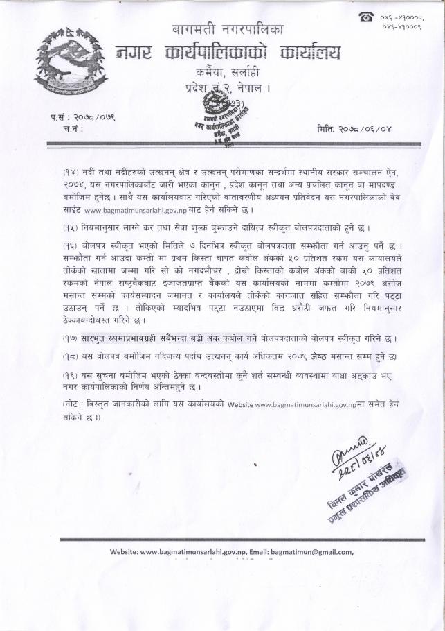 नदिजन्य पदार्थको विक्रीका लागी वोलपत्र आव्हानको म्याद थप सम्बन्धी सूचना