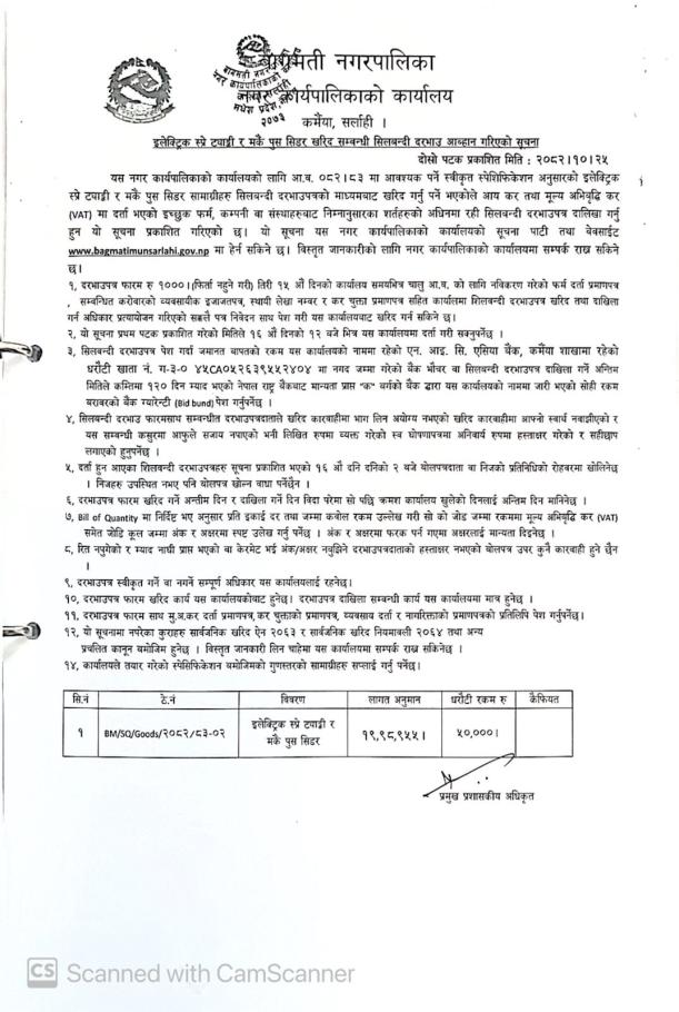 इलेक्ट्रिक स्प्रे ट्याङ्की र मकै पुस सिडर खरिद सम्बन्धी सिलबन्दी दरभाउ आह्वान गरिएको सूचना
