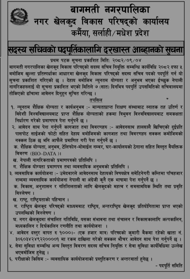 सदस्य सचिव पद पूर्तिको लागि दरखास्त आव्हानको सुचना